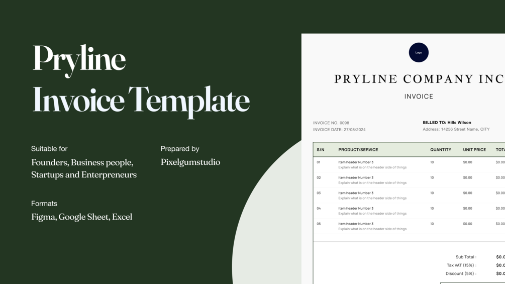 Download customizable invoice templates, ideal for freelancers and founders. Easily editable in Figma, or Canva, for quick and simple invoicing.