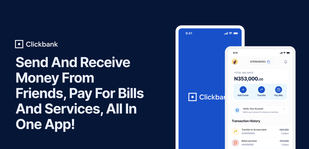 This is a case study for a fintech app that explains how a user sends and receives money, pays for services and bills, all in one app. Clickbank is a fintech product that places a number of facets at the forefront of its functions. They include; user onboarding, registration, BVN verification, transactions, and profile navigation.