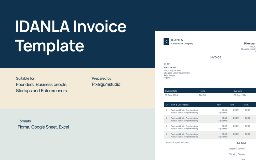 Download customizable invoice templates, ideal for freelancers and founders. Easily editable in Google slides Figma, or Canva, for quick and simple invoicing.