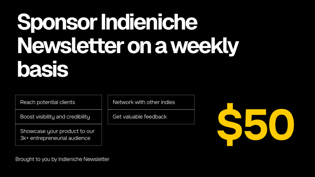 Indieniche is a newsletter sharing founder stories, tools, and growth hacks. We share lessons from successful founders to inspire others looking for new ideas or proven revenue-generating opportunities. You can check out our stories here.